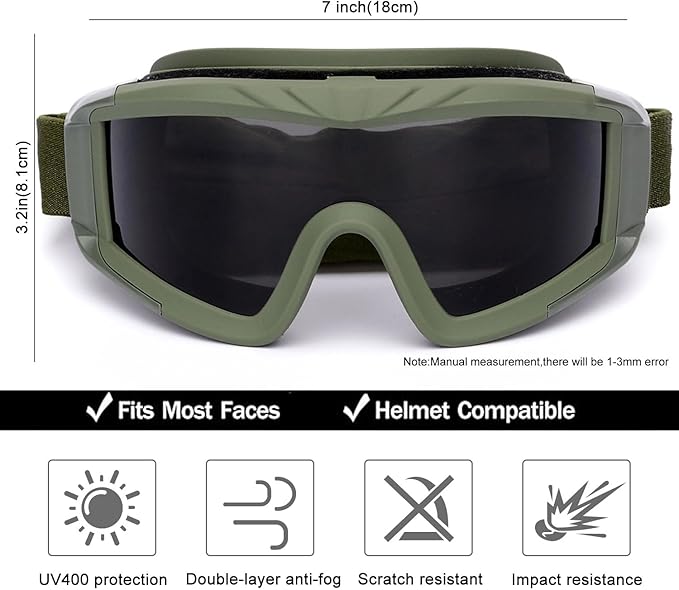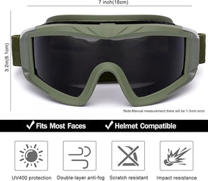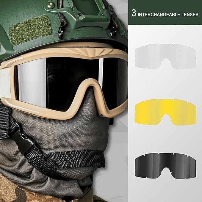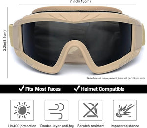 Airsoft Goggles Anti Fog Army Tactical Goggles with 3 Interchangeable Lens UV400 Protection Airsoft Desert