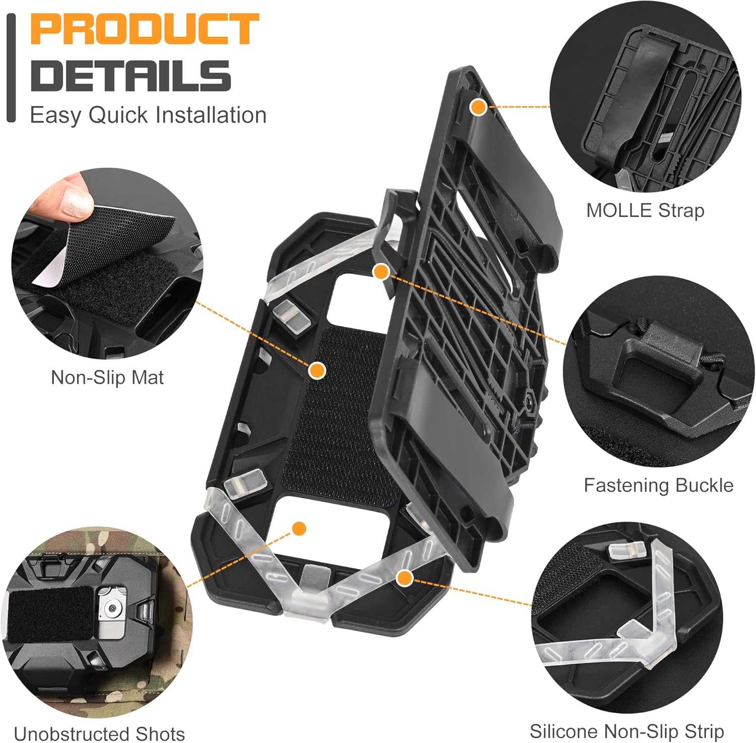 Chest-Mounted Phone Holder, Compatible with Screen Sizes 4.7" - 6.7" Accessories for Tactical Plate Carrier Vests