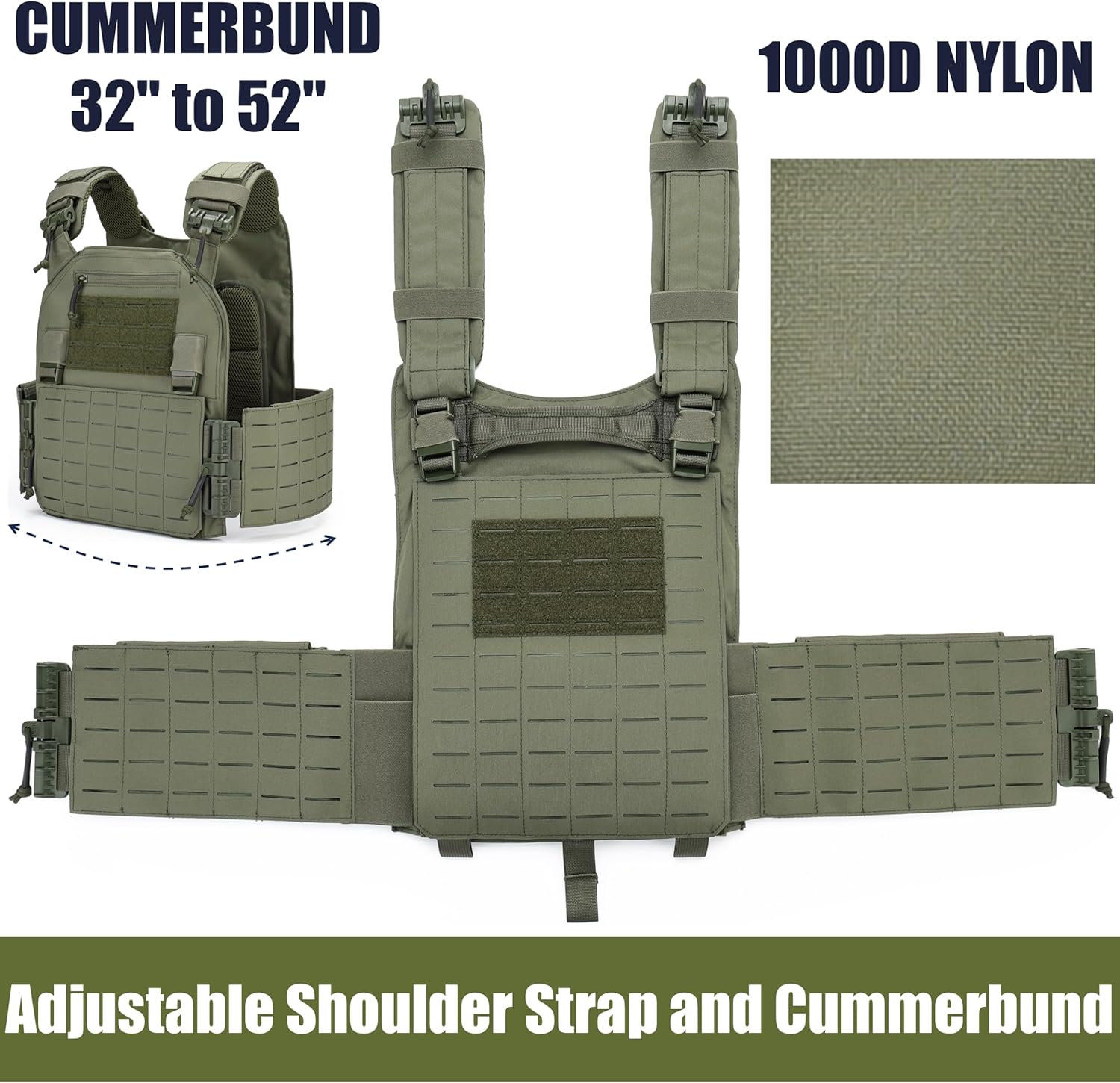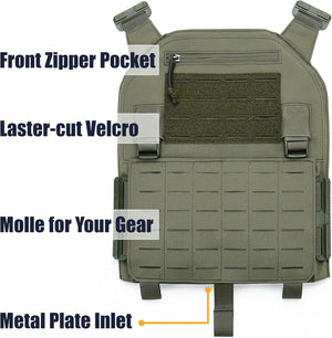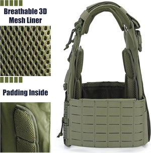 Tactical Quick Release Vest for Men, Fully Adjustable Plate Carriers Vest with Breathable 3D Mesh Liner